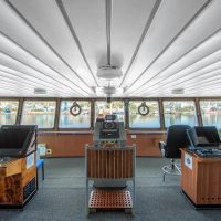 В каюте: две односпальные кровати, ванная комната (раковина, душ, туалет), шкаф для одежды, письменный стол, тумбочки, обзорное окно.