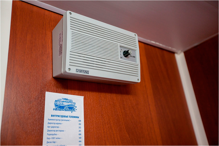 В каюте: двуспальная кровать, кондиционер, холодильник, телевизор, телефон, ванная комната (раковина, душевая кабина, туалет), корпусная мебель, фен, набор посуды и приборов, Wi-Fi.