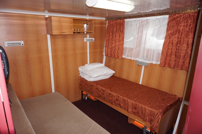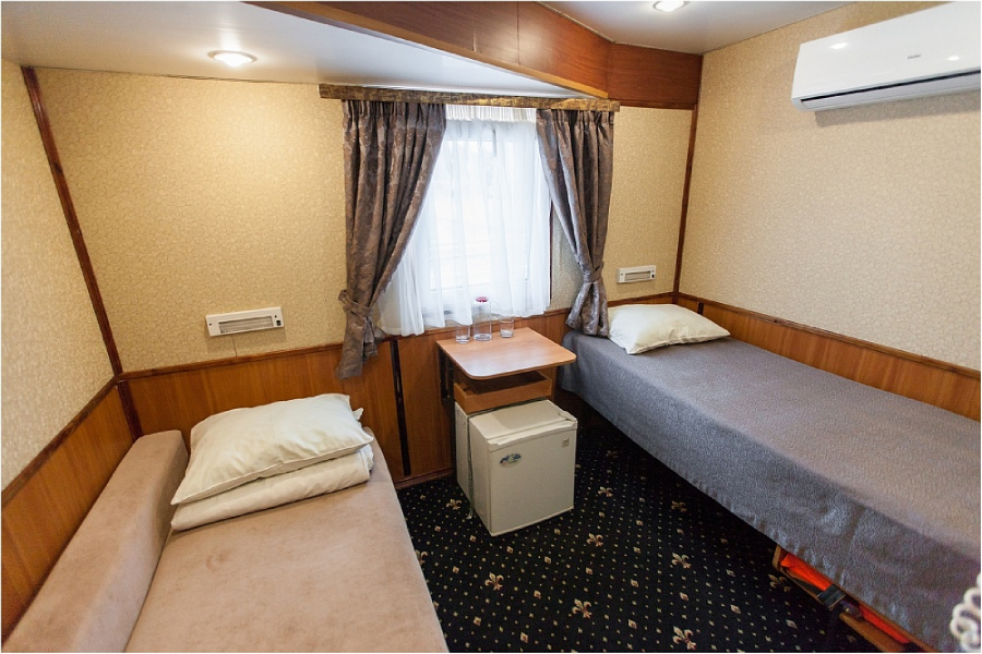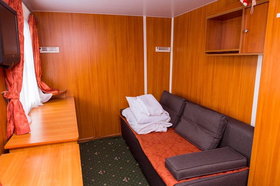 - В каюте Волга возможно размещение третьего человека на долонительном спальном месте – раздвижное кресло-кровать.