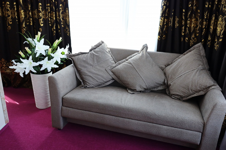 - Возможно размещение третьего и четвертого человека на дополнительных местах – двуспальный диван.
