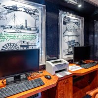 В каюте: двуспальная кровать (при необходимости трансформируется в две односпальные кровати), ванная комната (раковина, душ, туалет), комплект полотенец, фен, шкаф для одежды, холодильник, спутниковое телевидение, телефон внутренней связи, радио, сейф, кондиционер, иллюминаторы (не открываются).