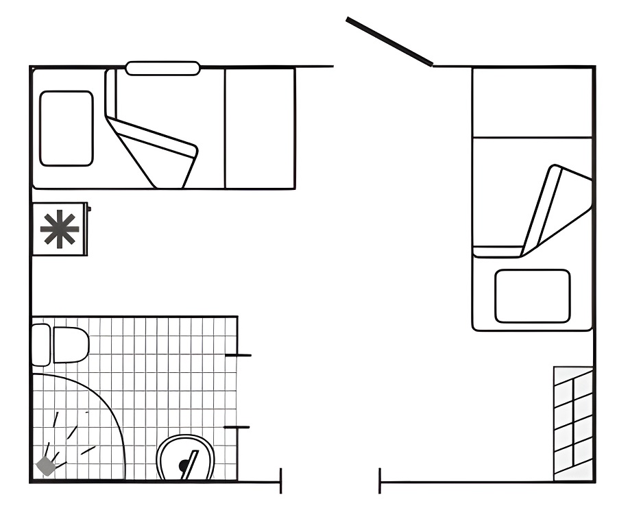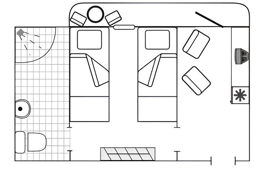 Двухместная каюта со всеми удобствами, расположенная на главной палубе.