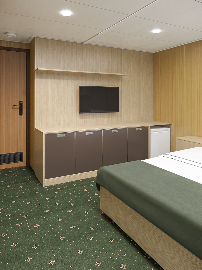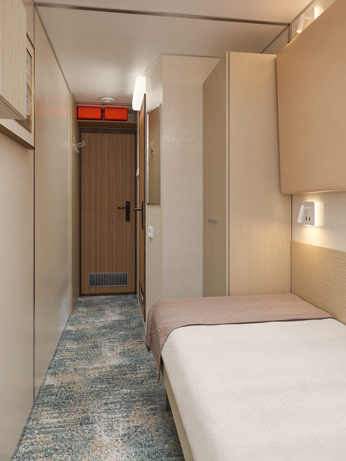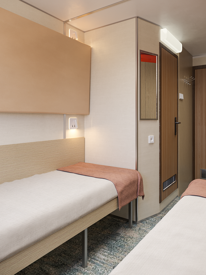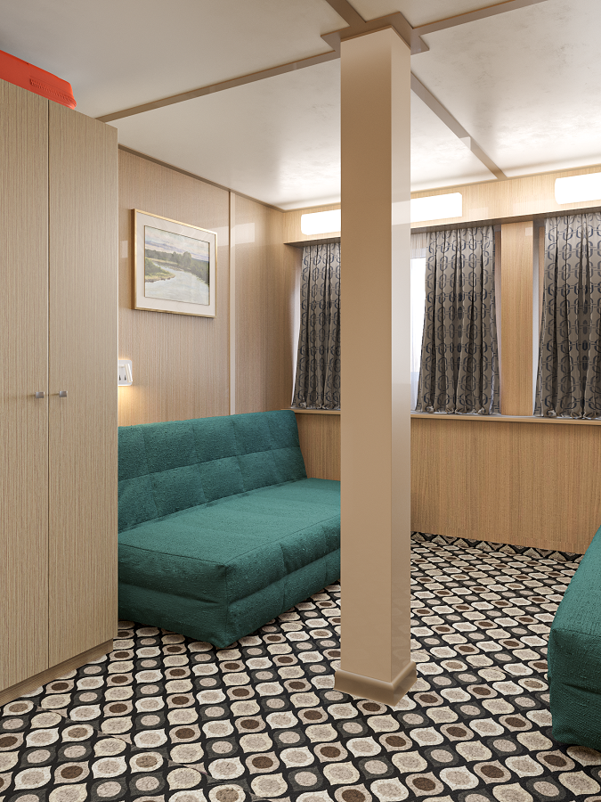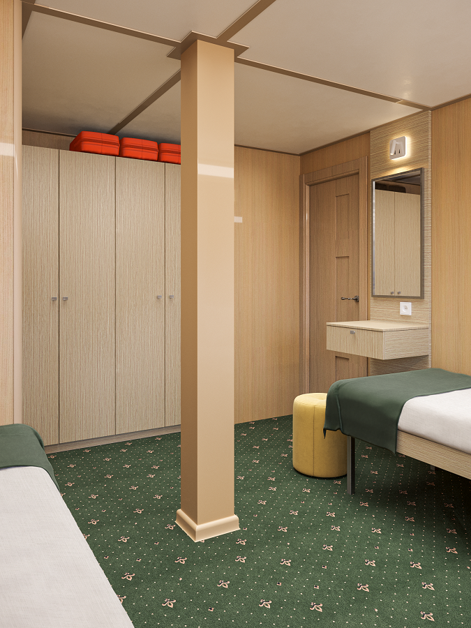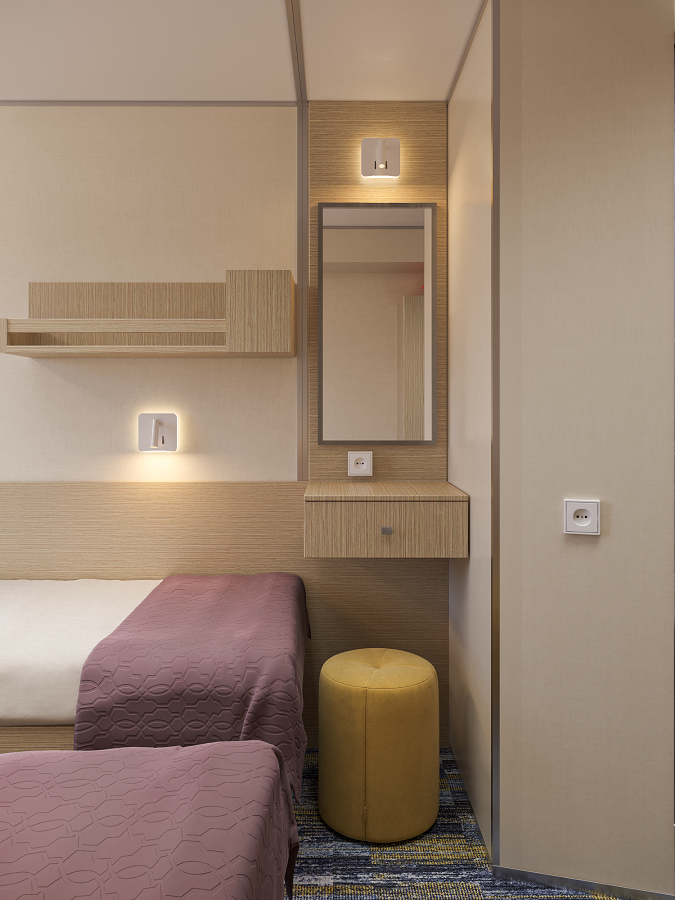 - В 2026 году каюты теплохода будут модернизированы. Перед вами – визуализация будущих интерьеров.