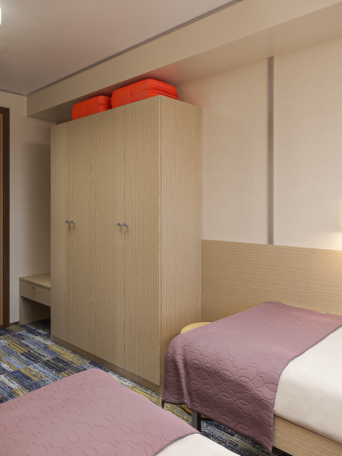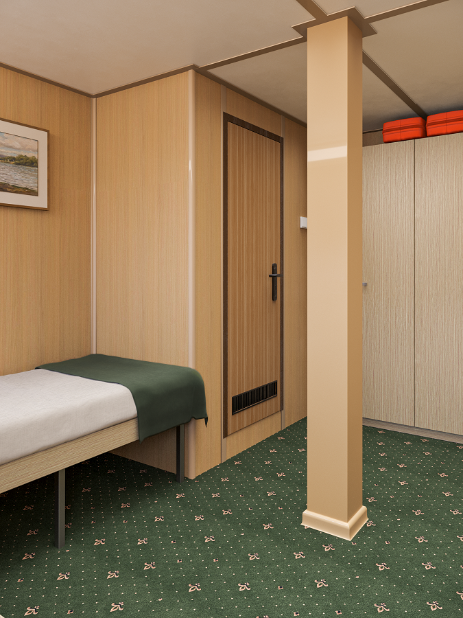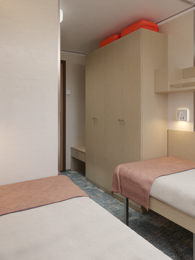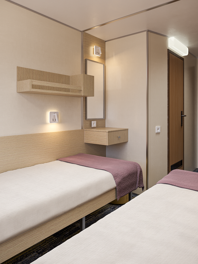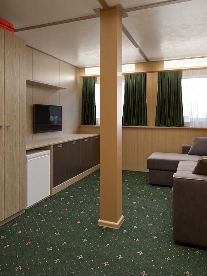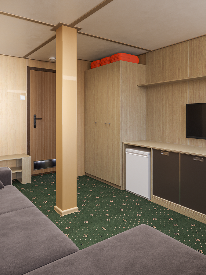 - В 2026 году каюты теплохода будут модернизированы. Перед вами – визуализация будущих интерьеров.
