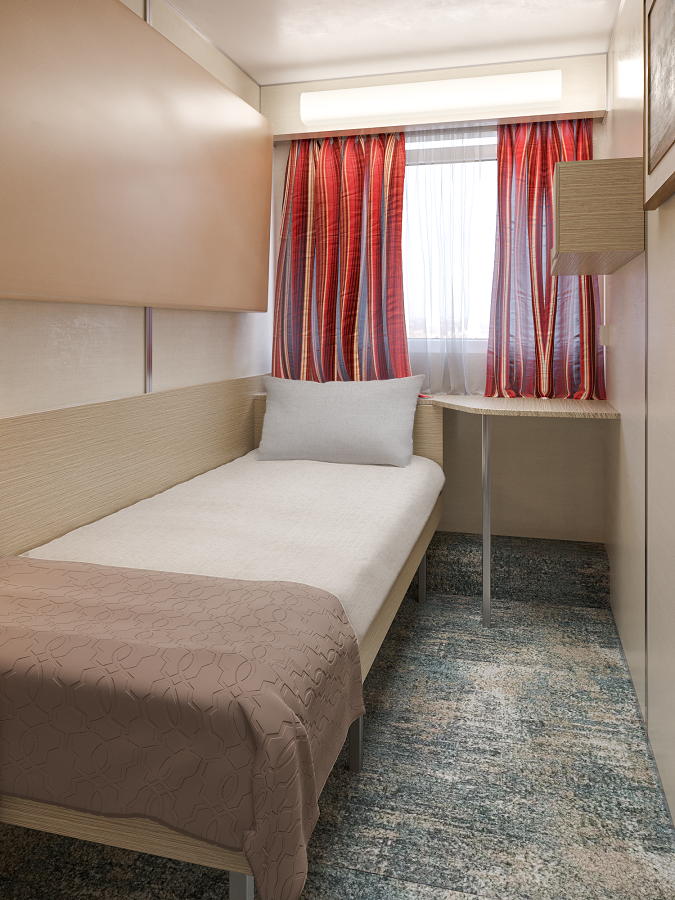 Каюты: 1-местная (главная палуба)Подробнее о каютеК категории 1-местная (главная палуба) относятся каюты: 184, 196.