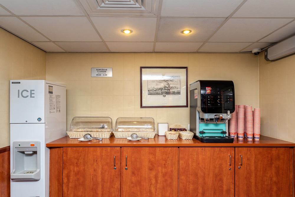 Также к услугам гостей: косметика для душа, туалетные принадлежности, щетка для одежды, банный халат, маска для сна, тапочки, набор посуды и столовых приборов, чайная пара, питьевая вода и капсульная кофемашина (одна чашка кофе в подарок), «приветственный набор» (игристый напиток и фрукты), мини-бар.