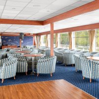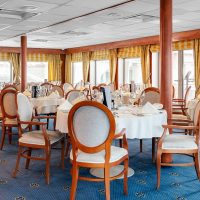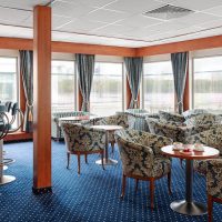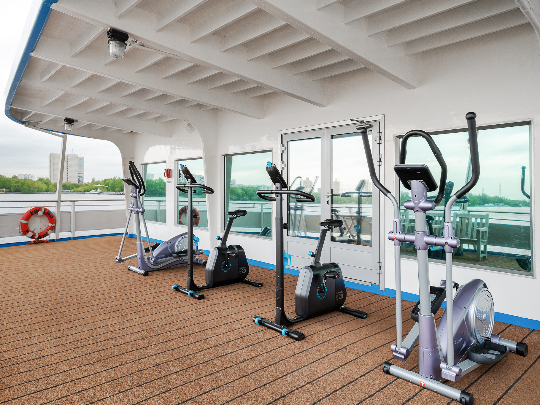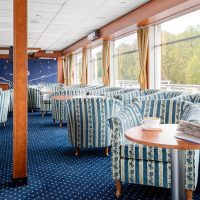 В каюте: одна двуспальная кровать, ванная комната (раковина, душевая кабина, туалет), кондиционер, шкаф, телевизор, фен, сейф, мини-холодильник, радио, розетка 220V, телефон внутренней связи, обзорное окно.