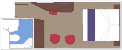 В каюте: две кровати (поставленные вместе или раздельно по вашему желанию), ванная комната с душем, телефон, фен, мини-бар (включен в стоимость), сейф, кондиционер, кофемашина, интерактивное TV, беспроводной интернет (безлимитный интернет-пакет Browse cruise package на 2 устройства), каюта без окна.