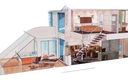 Сьют с джакузи Duplex Yacht Club (YJD) – двухместная каюта, расположенная на 9 и 12 палубах.