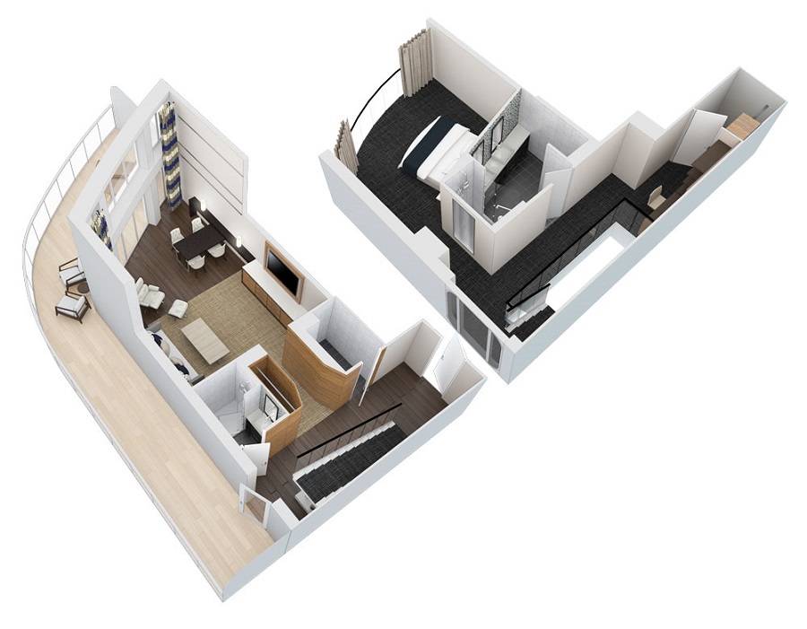 Сьют Owner's Suite – 1 Bedroom (OS) – двухместная каюта, расположенная на 15 и 16 палубах.