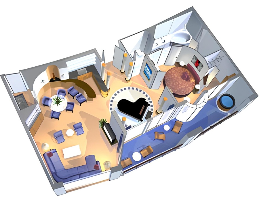 Сьют Royal Suite – 1 Bedroom (RS) – двухкомнатная двухместная каюта, расположенная на 10 палубе.