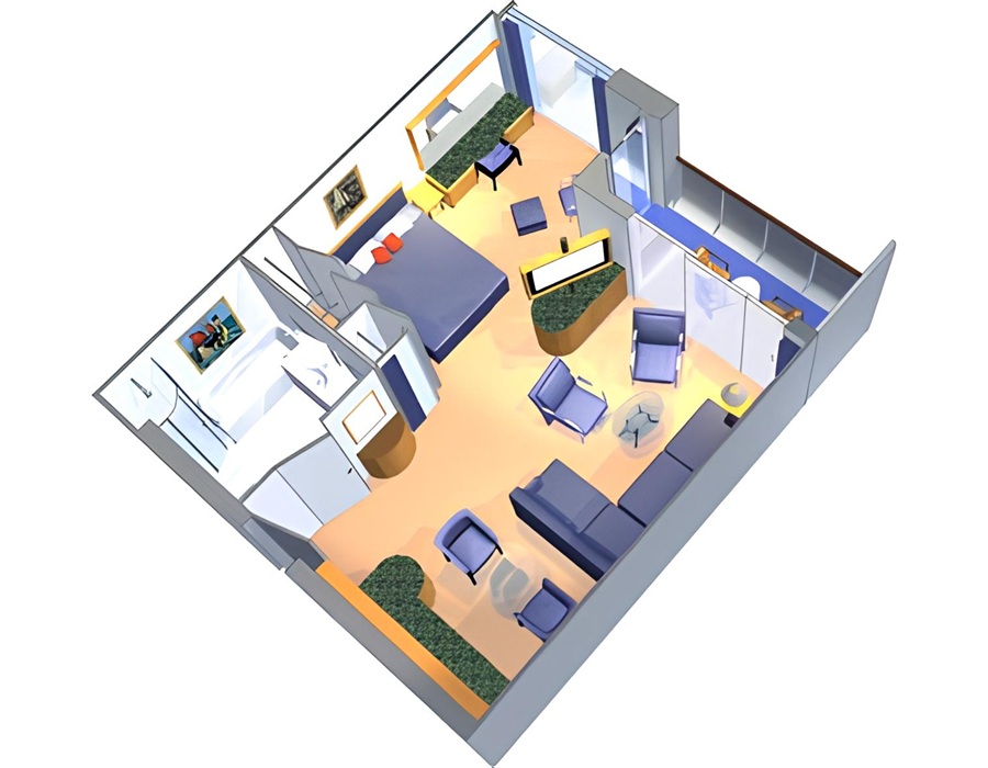 Сьют Junior Suite (J3) – двухместная каюта, расположенная на 9, 10 палубах.