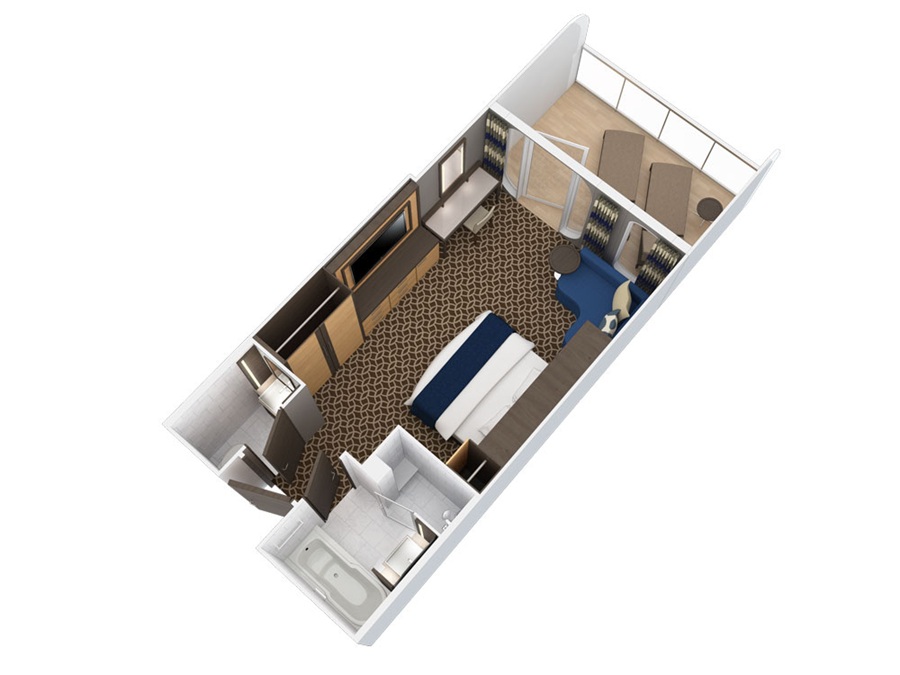 С балконом Ocean View with Balcony (3D) – двухместная каюта, расположенная на 6–9 и 11–13 палубах.