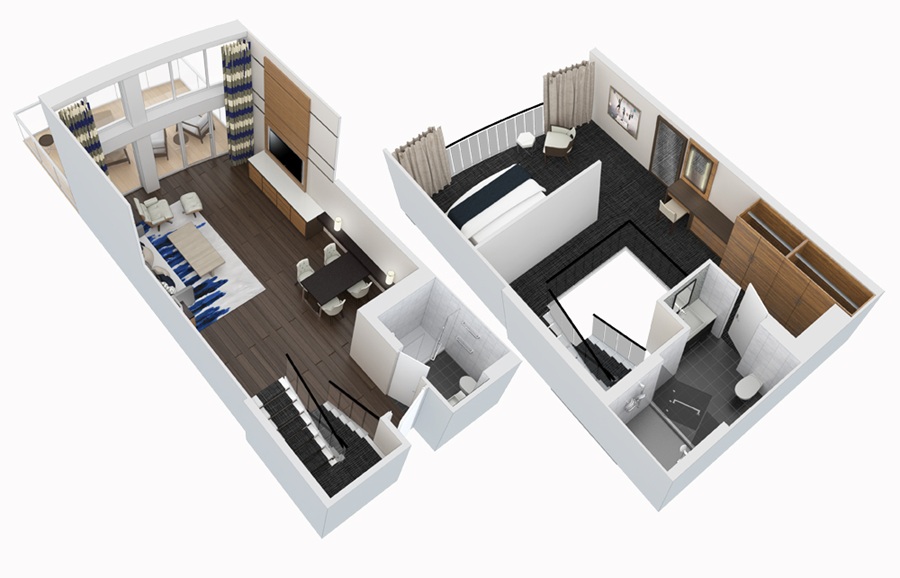 Сьют Sky Loft Suite with Balcony (SL) – двухуровневая двухместная каюта, расположенная на 8 и 10 палубах.