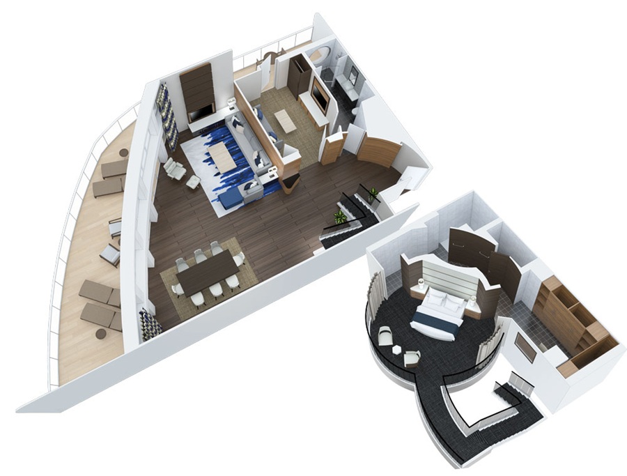 Сьют Sky Loft Suite with Balcony (SL) – двухуровневая двухместная каюта, расположенная на 8 и 10 палубах.