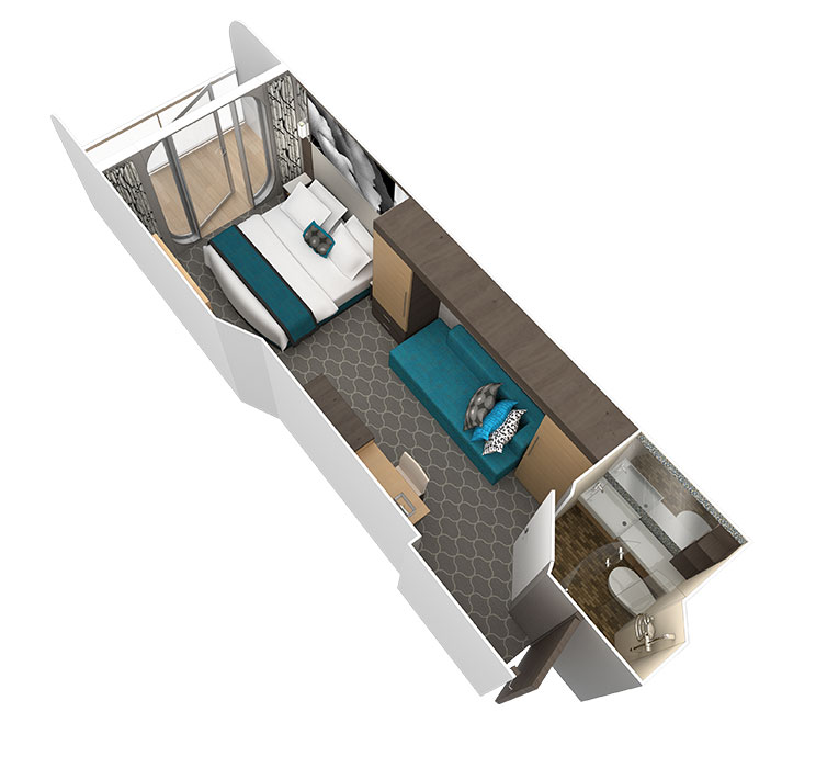 Внутренняя Studio Interior (2W) – одноместная каюта, расположенная на 6–13 палубах.