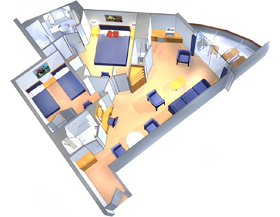 Сьют Owner's Suite – 2 Bedroom (OТ) – трехкомнатная двухместная каюта, расположенная на 7–9 палубах.