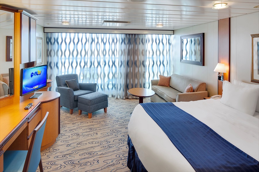 В каюте: две двуспальные кровати, двухъярусная кровать, две ванные комнаты (раковина, душ, ванна, туалет), банные халаты, туалетные принадлежности, фен, двуспальный диван, кресло, кофейный столик, интерактивное TV, телефон, сейф, кондиционер, мини-бар (оплачивается дополнительно), выделенная линия для подключения к сети интернет (оплачивается дополнительно), стеклянная балконная дверь-окно, персональный балкон с мебелью для отдыха.
